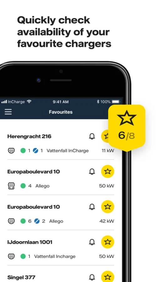 - See all charging points where you can charge with an InCharge chargecard or through the app