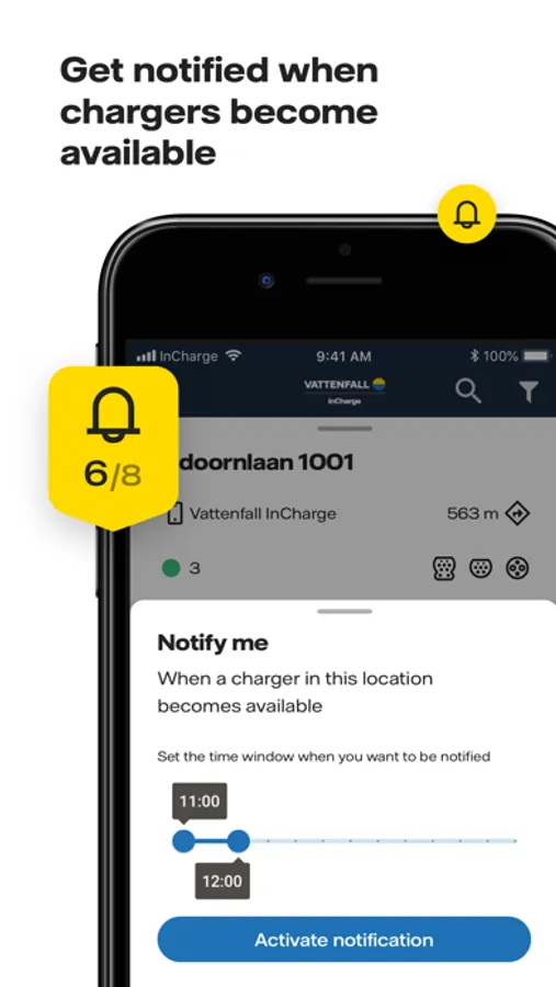 - Receive notifications as soon as a charging point is free again