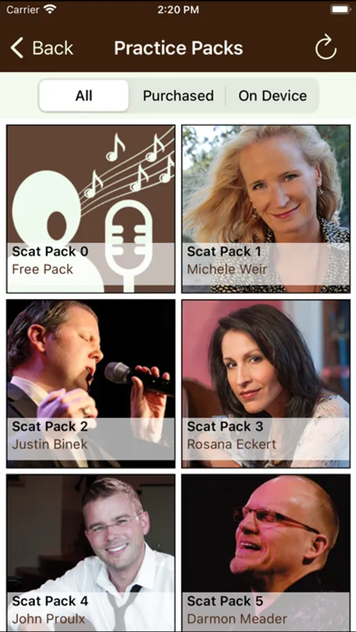 ScatAbility is easy to use: sing exercises, call & response and etudes with great jazz singers including Darmon Meader, Rosana Eckert, Greg Jasperse, Kate Reid, Justin Binek, Michele Weir, John Proulx, and more to be added soon. Mute the vocals to practice on your own with the backing tracks, and when ready, record yourself, listen back, then export for other uses!
