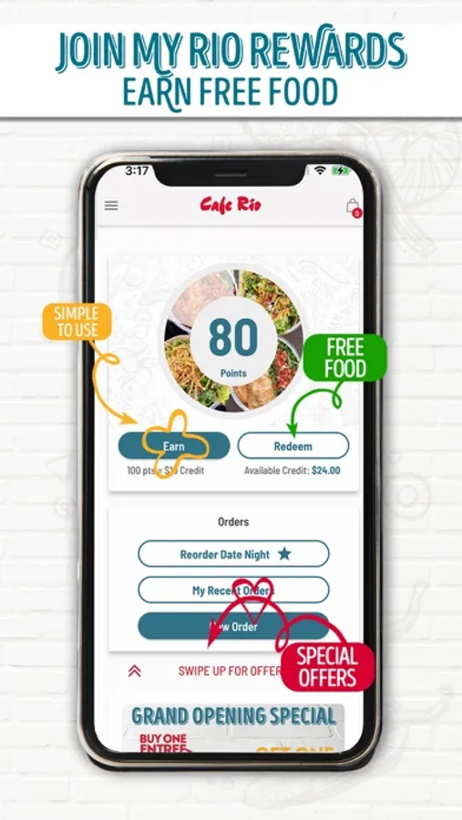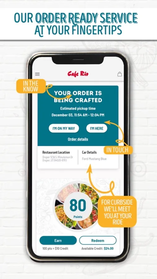 In addition to rewards, the Cafe Rio app gives you fast and easy access to mobile ordering, order status tracking, special offers, location information and more.