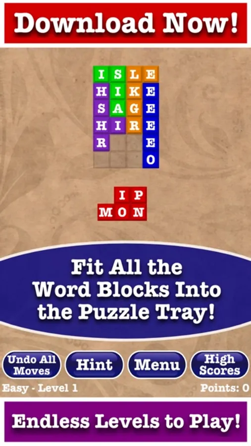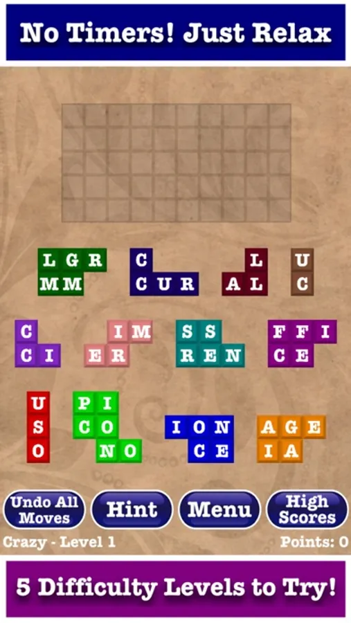 All you need to do is make horizontal words with all the pieces. Sounds simple, but wait till you try crazy mode!
