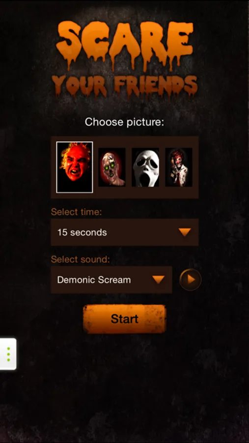 Give your telephone to your friend in order to let him play the game. After the set time, the horrifying picture with the terrifying sound will startle your friend :).