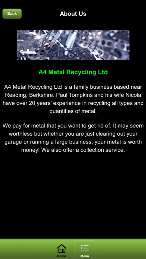 The official app for A4 Metal Recycling where you can find out where we are, how to get in touch with us, and even up-to-date prices of what we pay for your metal.