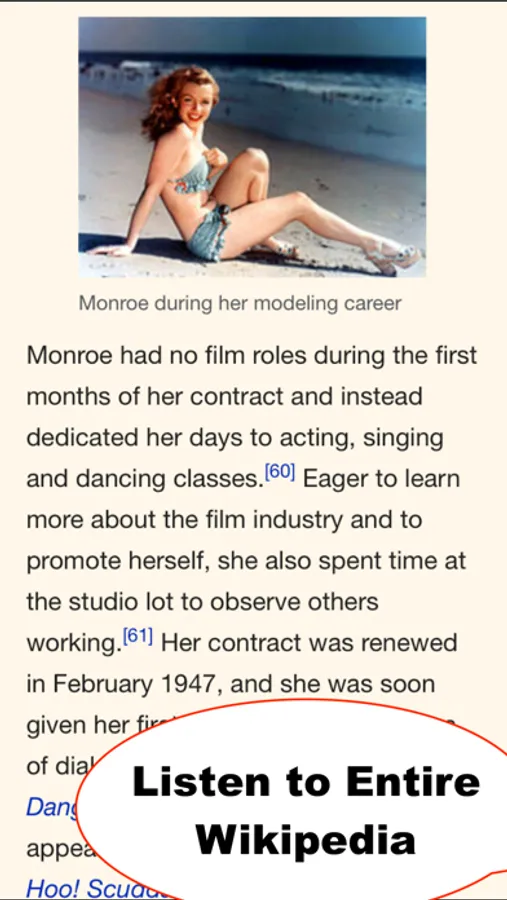 【Listening to Wikipedia】No time to read? You can listen to any article in Wikipedia. You can mix reading and listening seamlessly. Contents are live from wikipedia.org website.