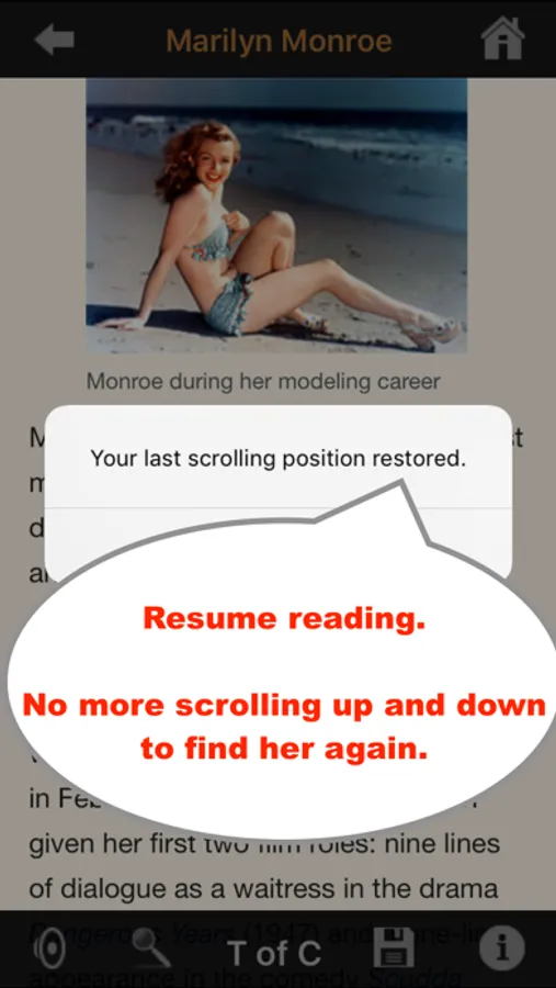 1. Bookmark your reading position. Automatically resume reading when you come back to an article, no more scrolling to find where you last left off.