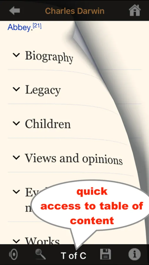 4. Quick and easy access to Table of Contents. No more scrolling to find a section of interest.