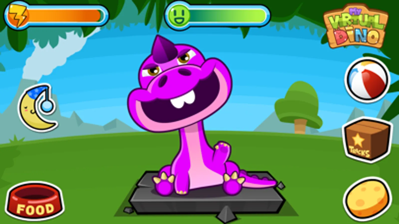 All the fun of owning a little dinosaur right in your hands! Raise, feed, teach, clean, train, perform numerous tricks and play exciting mini games with your adorable pet dinosaur. My Virtual Dino is a guarantee of fun for the children!