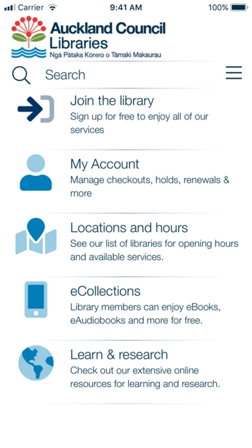 Search for books, eBooks, DVDs, audiobooks and more on the Auckland Libraries app! Request and renew your library items, manage your library account, browse eBooks and eAudiobooks, find a library in your area and connect with us on social media. Use a digital version of your library card and add the library cards of your whānau to manage them all in one place. The Auckland Libraries app is free for you to download and use, and helps make the library accessible to you anytime, anywhere.