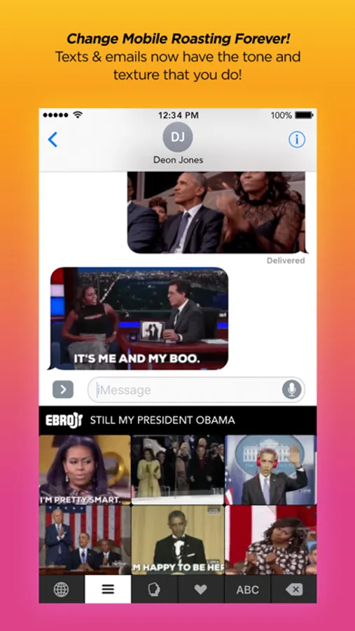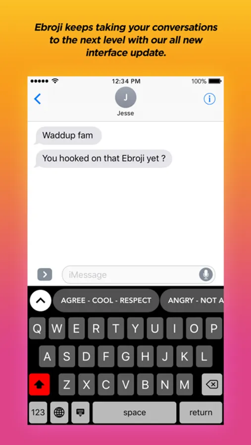 Friends don't let friends walk around without the dopest GIF keyboard in the game! As the first truly curated GIF keyboard designed specifically to enhance the way we already communicate, EBROJI has changed the GIF game forever. EBROJI immediately brings your mobile language to life!