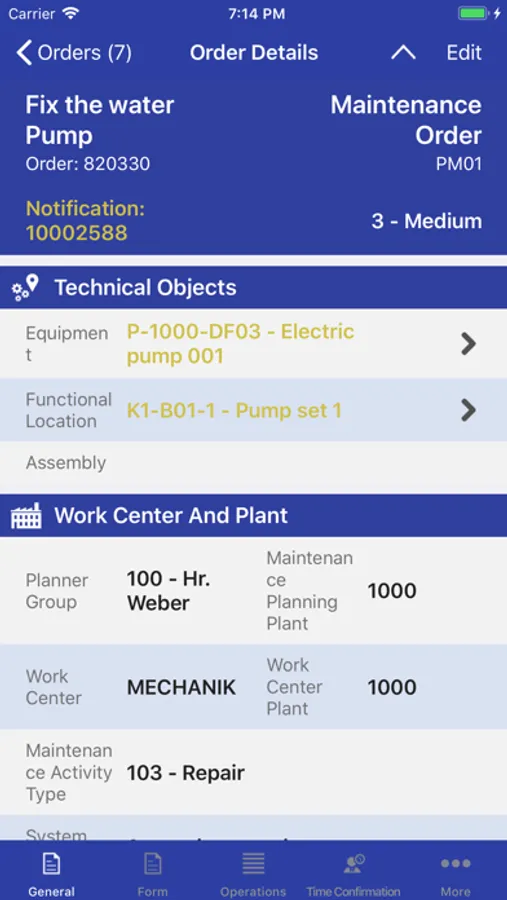 Access Work Orders, Operations, Equipment, Materials, Object Lists on the mobile device
