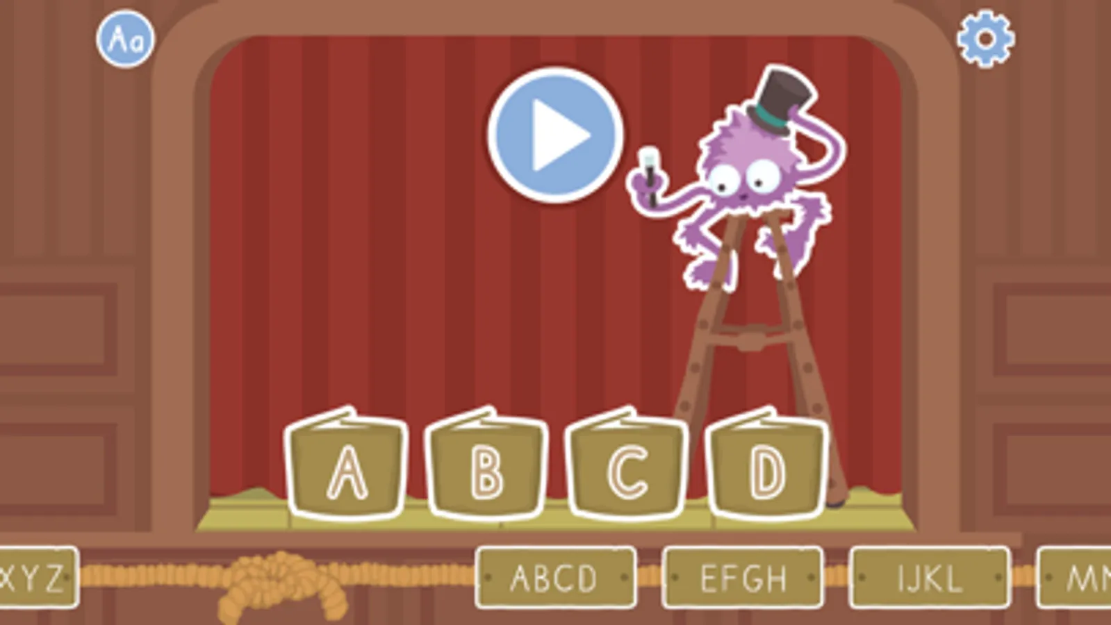 Det finns sju olika grupper som innehåller alla bokstäverna i alfabetet. Frågor ställs om de olika bokstäverna. Spelet går ut på att känna igen stor eller liten bokstav, hur bokstäver uttalas, känna igen första bokstaven i ett ord och vilken bokstav som kommer därefter.