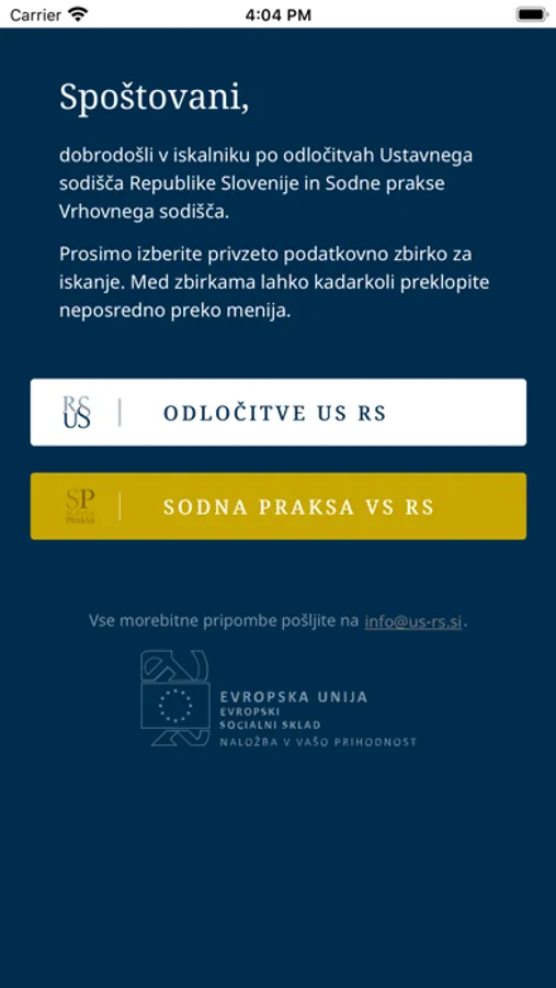 Aplikacija je namenjena iskanju po odločitvah Ustavnega sodišča Republike Slovenije ter iskanju po odločitvah drugih sodišč v okviru sodne prakse na Vrhovnem sodišču Republike Slovenije.