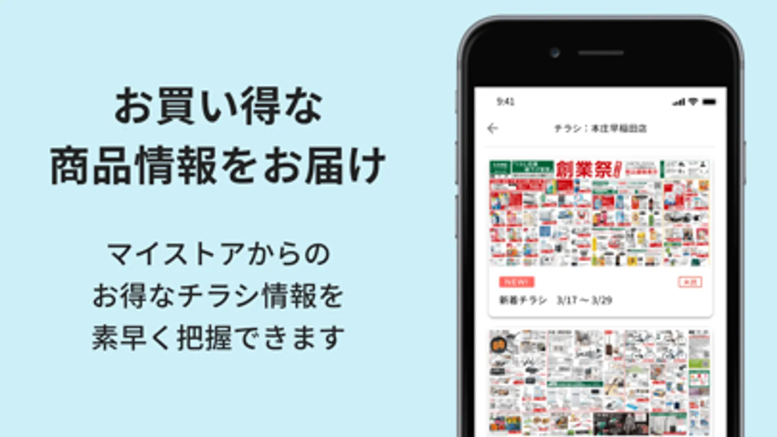 お気に入り店舗を「マイストア登録」すると、店舗からのお得な情報がチラシで閲覧できます。
