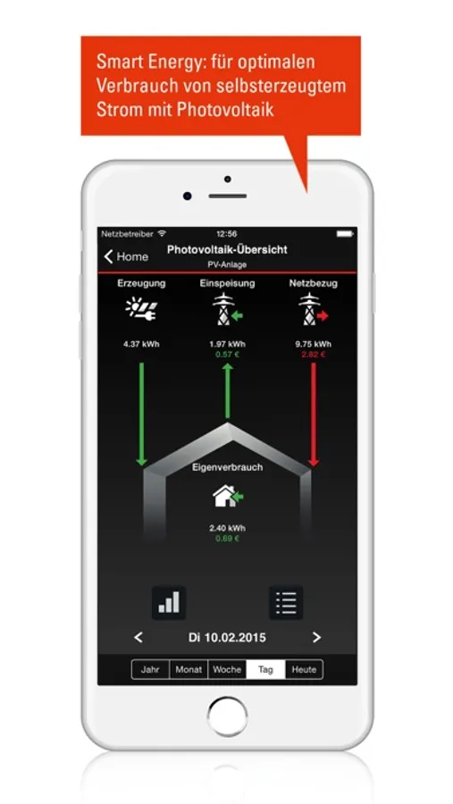 • New: Connection to a PV system with precise indication of power generated and consumed on site, power exported to the grid and power drawn from the grid