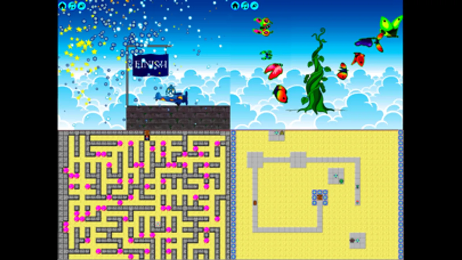 Doing problems earns you robots for the Labyrinth, a maze search game.