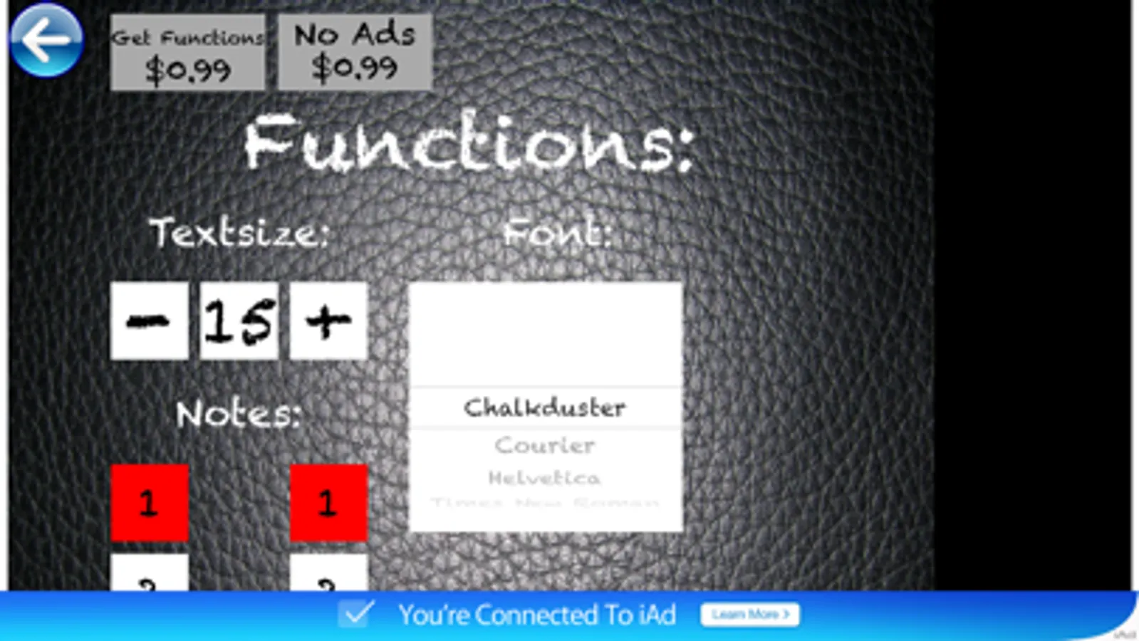 As in-app purchase more functions can be activated. For just 99 cent each user has access to 3 more notepads (6 in total) and can change the font size and font (5 different fonts). You also have the option to remove all ads from the app.