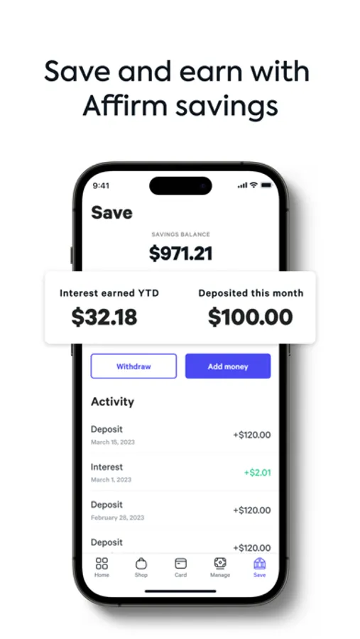 Rates from 0 - 36% APR. Loan options vary, are subject to eligibility, and may depend on whether your loan is applied for before or after your card purchase. There are minimum purchase amounts for loans, a down payment may be required, and may not be available in all states. Affirm savings accounts are held with Cross River Bank, Member FDIC.