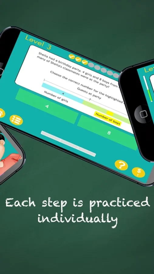 Unique on the app store, this app helps kids understand HOW to do math word problems step-by-step. We start with the absolute basics, and by the end your child will know how to interpret and complete one-step math word problems using addition and subtraction.