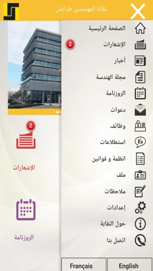 تطبيق خاص بنقابة المهندسين في طرابلس لبنان والذي يستطيع المستخدم من خلاله التواصل مباشرة مع النقابة والاطلاع على: