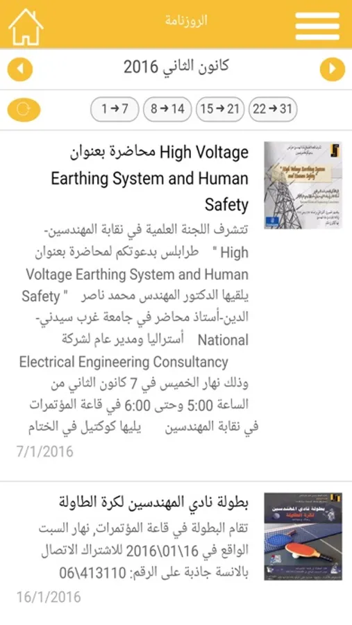 • أخبار النقابة المهنية والاجتماعية والمناسبات كما يمكن للمهندس ان يطلب بأن ترسل كافة أخبار النقابة آلياً الى هاتفه من خلال الرسائل التلقائية