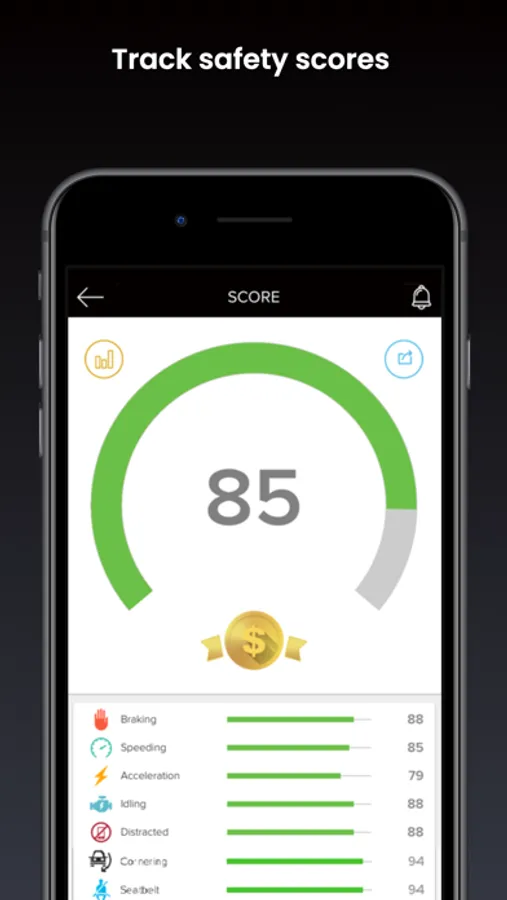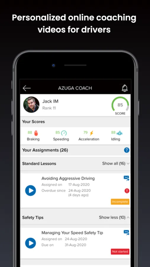 • Track safety scores. Drivers can keep tabs on their safety scores, see how they stack up against one another, and coach themselves into becoming safer, more efficient drivers. Supervisors can view the same scores and leaderboard to see how well drivers perform behind the wheel and what driving behaviors need work, from a laptop, mobile phone, or tablet.