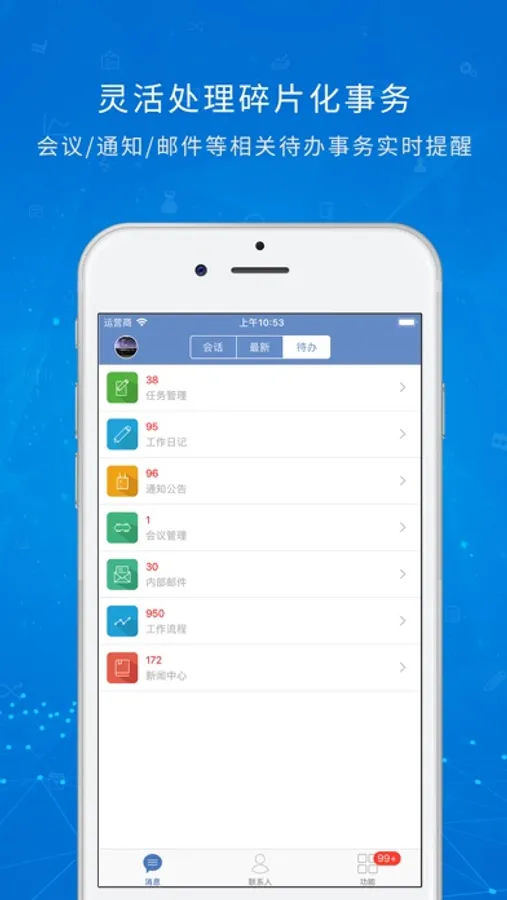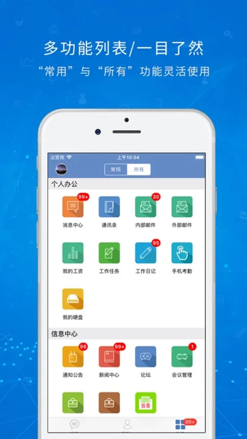 协众OA手机版客户端是协众协同管理办公系统在PC以外的延伸使用。用户无需电脑就可以在外面通过手机客户端登录系统进行流程审批,发起申请,查看通知公告,发送内部邮件以及查看员工通迅录等,轻松实现移动办公。