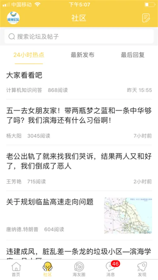 滨海论坛是滨海门户网站滨海网旗下社交平台,为滨海百姓提供资讯、房产、家装、汽车、二手信息、征婚交友等信息平台,是政府和百姓沟通的桥梁,是全新的网络平台。