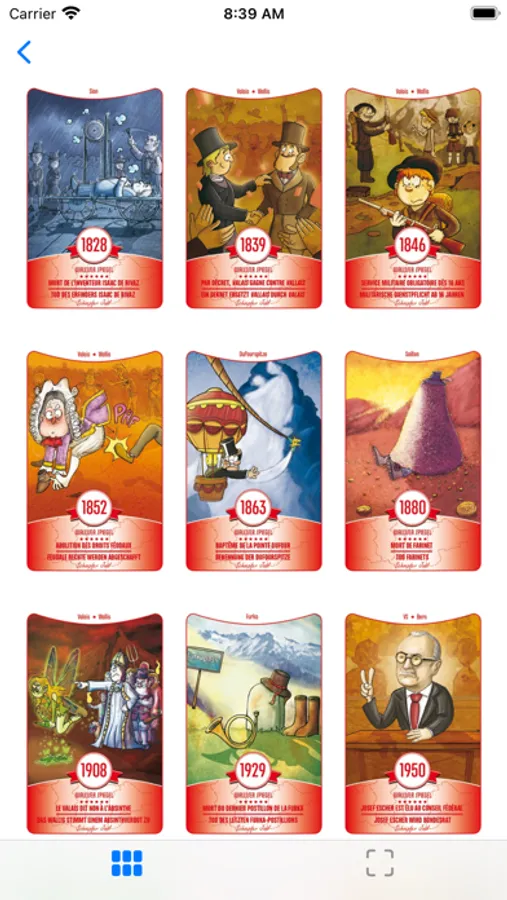 A l'occasion du 200ème anniversaire de l'entrée dans la Confédération Suisse du Canton du Valais, un jeu de cartes historique fut édité. Cette application permet de retrouver le texte historique associé à chacune des cartes.
