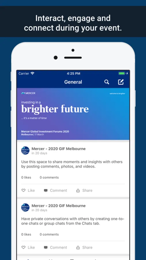 The Mercer GIF app is a container for the Global Investment Forums, providing cutting-edge interactivity and engagement for Mercer delegates.