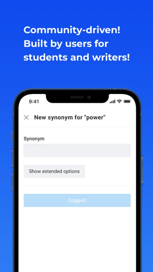 Developed by PowerThesaurus.org (popular community-driven online thesaurus). The extensive collection of synonyms, antonyms and other term relations is updated in real-time by Power Thesaurus community for writers and students.