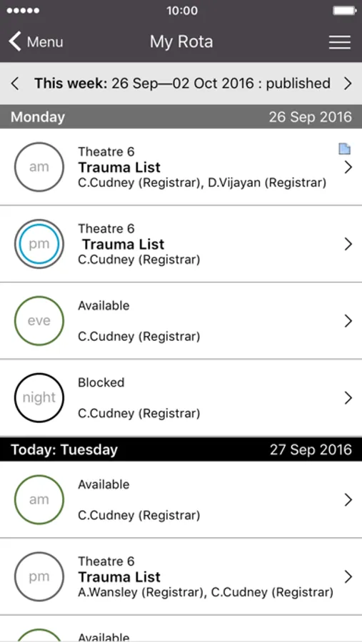 Use Medirota for iPhone to connect to your department's live rota from anywhere.