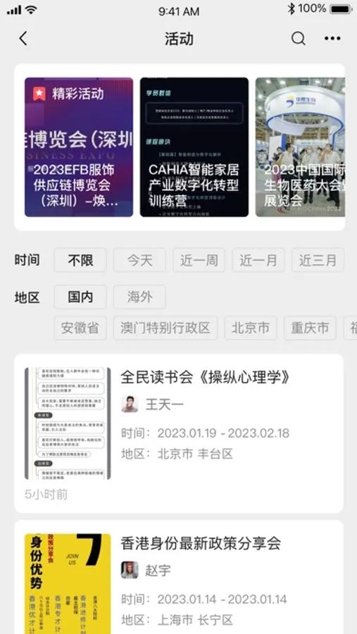● 活动:提供活动发布、报名及管理等服务,便捷发布会展、会议、户外、聚会交友等活动。