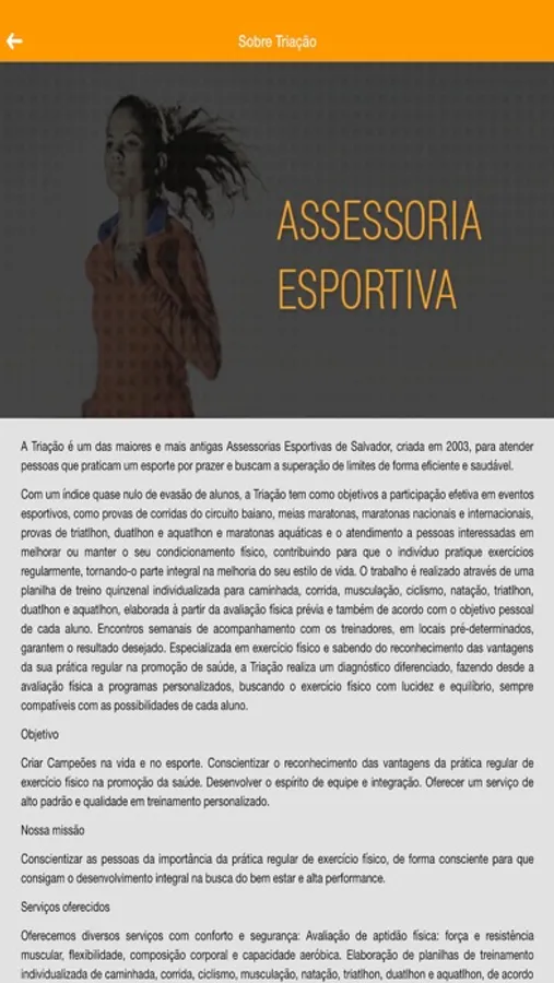 A Triação é um das maiores e mais antigas Assessorias Esportivas de Salvador, criada em 2003, para atender pessoas que praticam um esporte por prazer e buscam a superação de limites de forma eficiente e saudável.