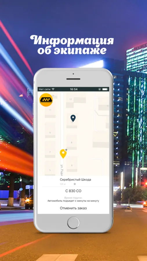 Марка, номер, цвет и время прибытия такси известны заранее. После завершения поездки Вы можете ознакомиться с длительностью, расстоянием и итоговой стоимостью.