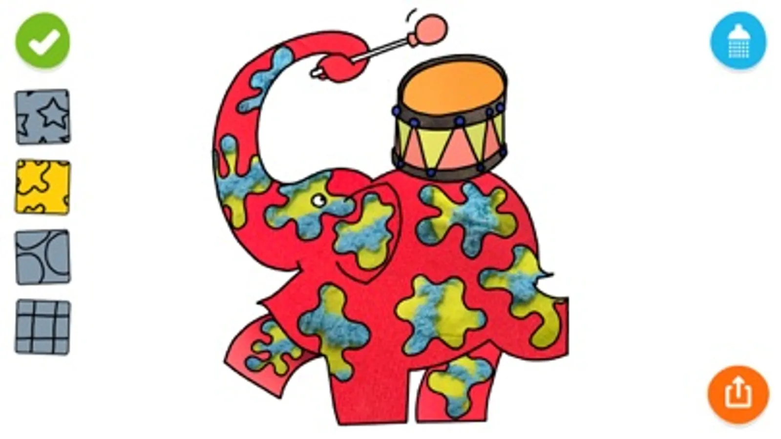 Use your camera to take photos of interesting shapes, colors and textures and add them to your elephant’s patchwork pattern. Make every one of Elmer’s friends colorful and unique. Each of the ten elephants has four patchwork patterns to choose from – combined with the photos you take, your parade will be truly one-of-a-kind!