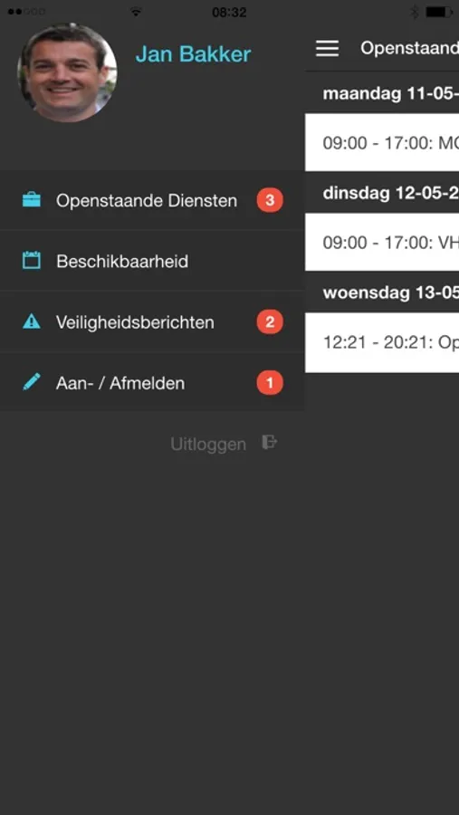 - Aan en afmelden van diensten incl. urenregistratie en afwijkingen