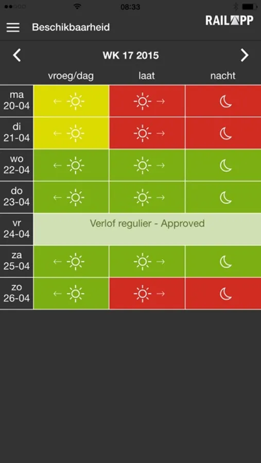 Met de RailApp kun je als spoorwegprofessional op elk moment van de dag, wanneer het jou uitkomt, je persoonlijke beschikbaarheid doorgeven. Je kunt reageren op openstaande diensten en tevens direct bekijken wanneer je bent ingepland.