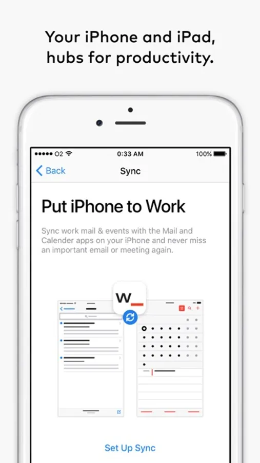 — Sync your work email, contacts, and calendar with your iPhone or iPad.