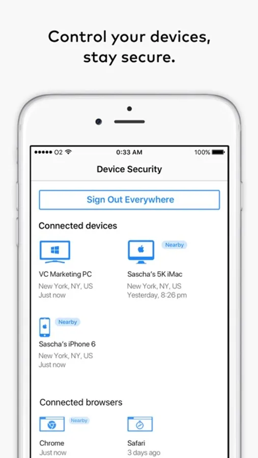 — Monitor and control the devices, apps, and browsers connected to your account.