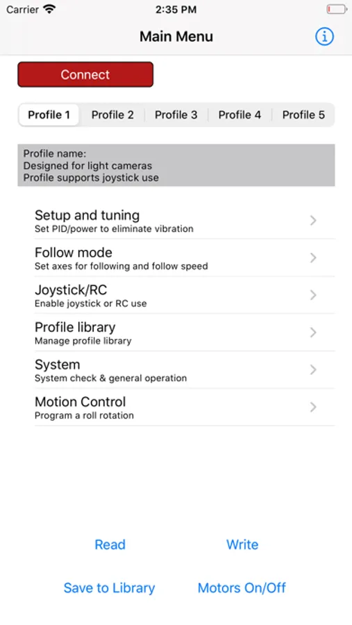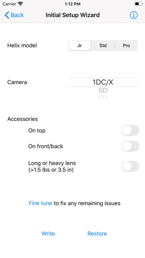 The Letus Helix app is designed to be a simple and intuitive way of changing settings on the Letus Double Helix, Helix Pro, Standard Helix, and Helix Jr. Many settings from the SimpleBGC GUI (PC/Mac-based configuration program) have been eliminated, because those settings are only needed to work with other gimbals or are rarely used. Additional tools to help the user have been created to assist the user in their use of the Helix.