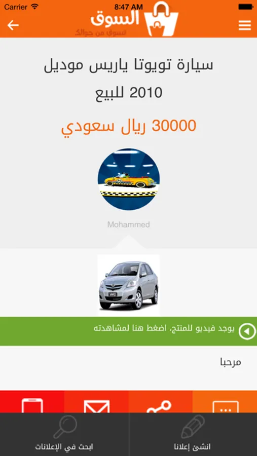 تطبيق السوق قم بعرض وشراء كل ماترغب به من منتجات يضعها مستخدموا التطبيق حول العالم بسهولة وسرعة مع امكانية عرض فيديو للمنتج وعرض الصور الخاصة به.