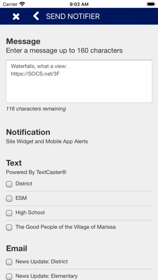 Update your SOCS website and send alerts from anywhere. Post new articles to your site using images, links, and formatted text. Send new articles and special alerts via push notifications, text, email, and social media.