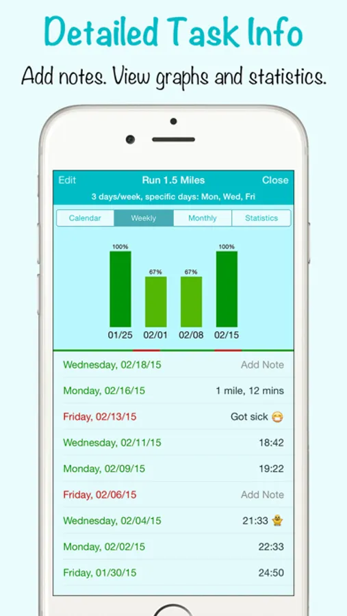 Add Task Notes — So you can record important details, time of completion, or even why you missed a day.