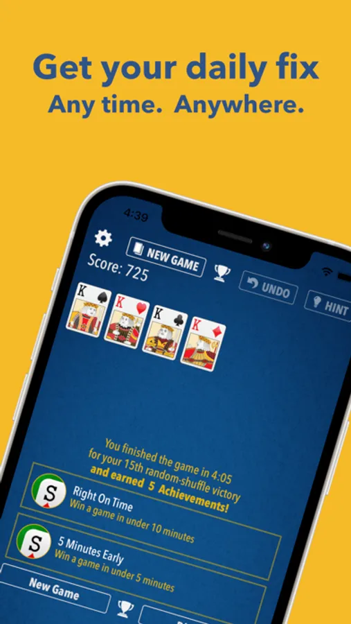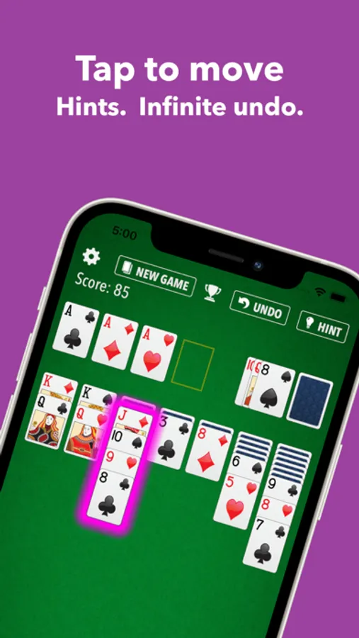 Big card faces are easy to read. Tap or drag to move. Guaranteed-Winnable shuffles, Hints, and infinite Undo are available, and more. Daily Challenges too! Try Funner Solitaire today!
