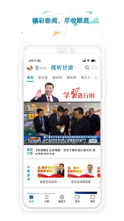 视听甘肃客户端是甘肃省广播电视总台在互联网开展新闻宣传、舆论引导、构建网络文化传播的主阵地,客户端依托甘肃省广播电视总台丰富的视听资源,以“好看、有用、重要”为内容定位,提供总台自办节目的视音频观看、点播服务,同时,可为用户提供时政、社会、娱乐、社交、互动等综合信息及交流服务,是甘肃省广播电视总台在新的传播格局下提升主流媒体地位,实现频网一体、频网共振、移动优先而全力打造的具有甘肃地域特色的互联网视听平台。