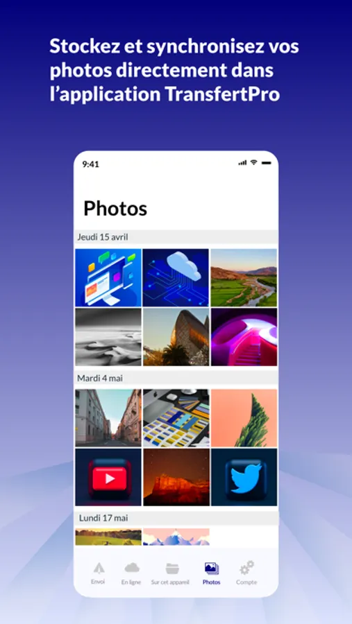 Vous pouvez synchroniser vos documents, photos et vidéos, puis les transférer facilement où que vous soyez.