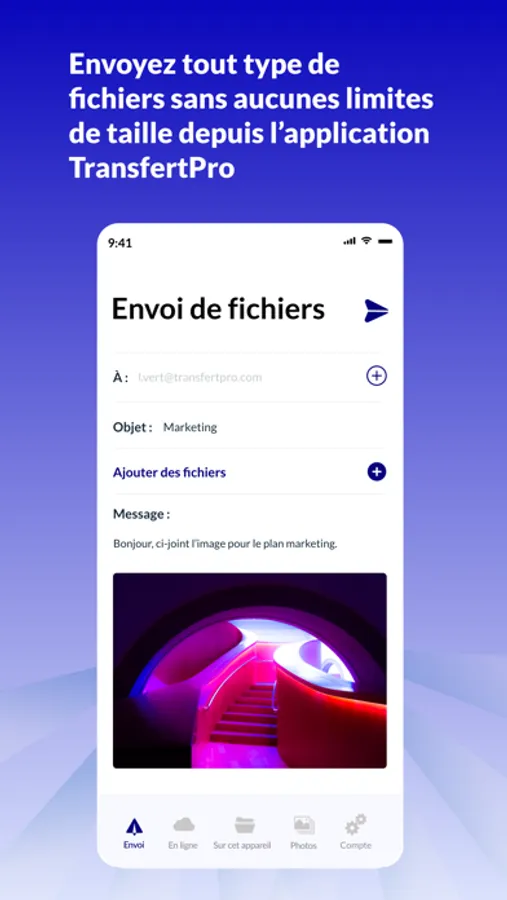 - Envoyez de gros fichiers à toutes les personnes de votre choix, même si elles ne possèdent pas de compte TransfertPro.