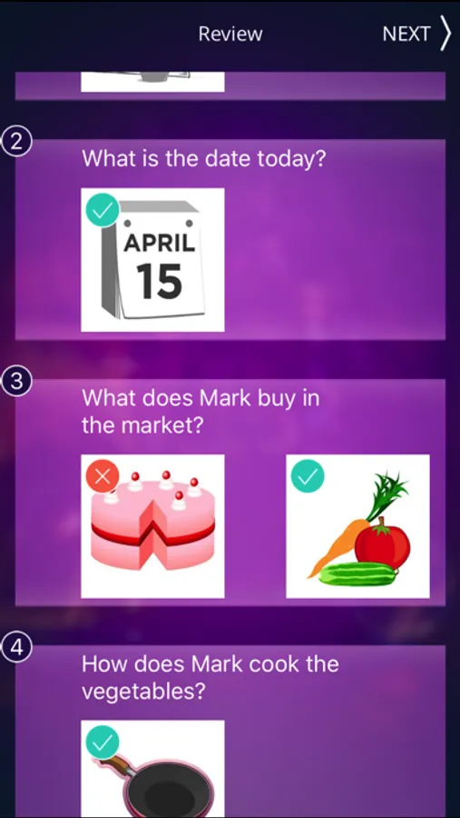 See your score and review your answers - if you didn't answer correctly, you can see the correct answers