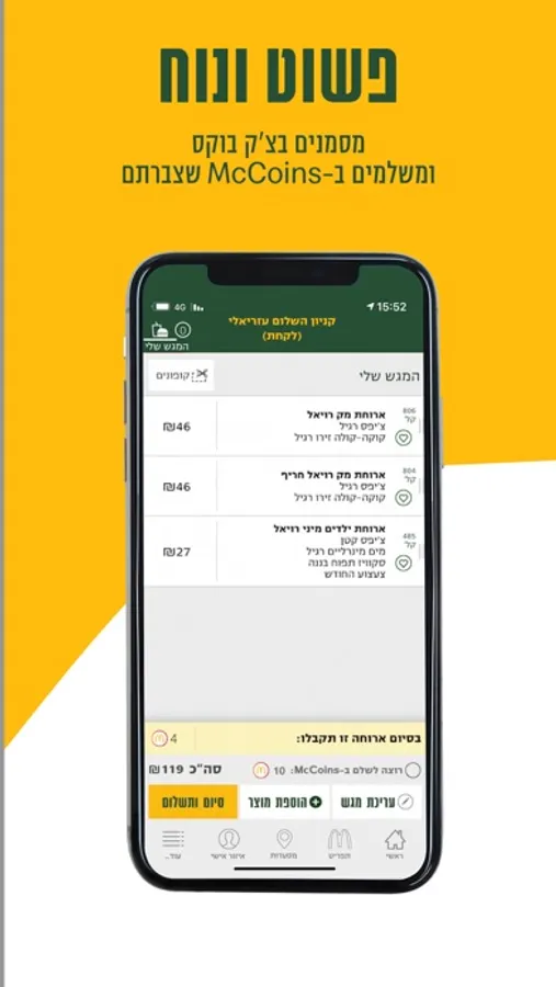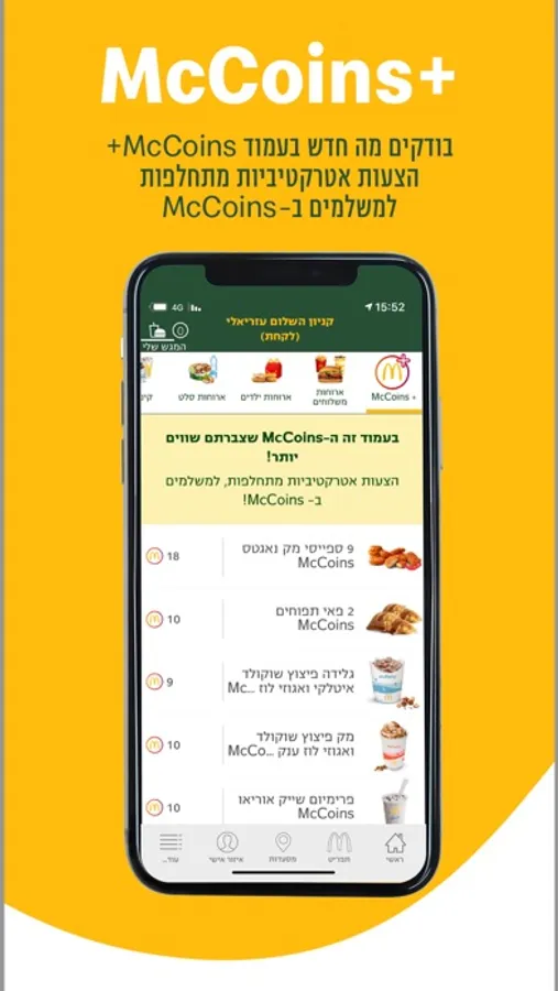 בכל תשלום מ- 25 ₪ צוברים מק קויינס לשימוש כבר בקנייה הבאה :) מזמינים מה שאתם רוצים באפליקציה, משלמים ורואים כמה מק קויינס צברתם בקנייה. תוכלו להשתמש במק קויינס שלכם כבר בקנייה הבאה. קונים יותר, צוברים יותר ומשלמים פחות!