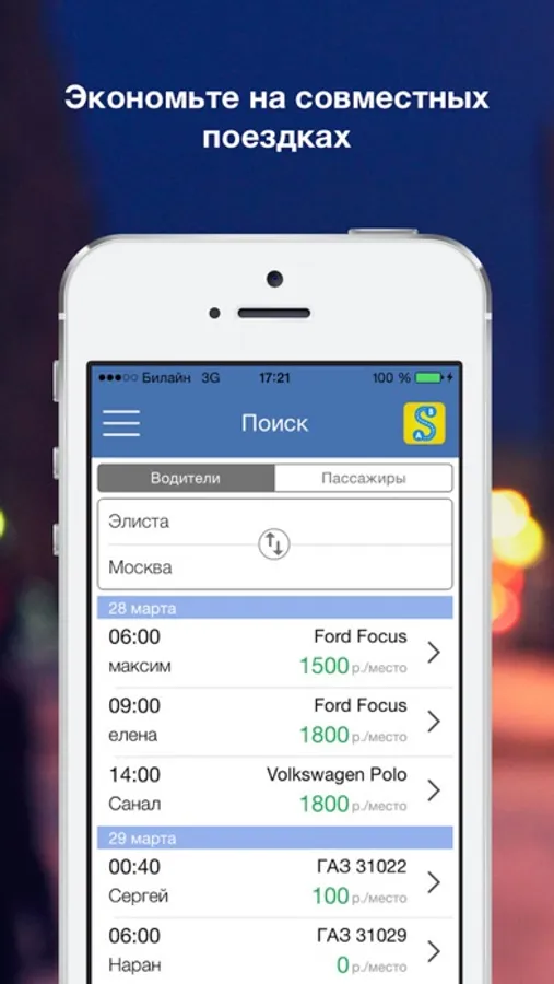 Shareway - бесплатное приложение для поиска водителей и пассажиров: начните экономить на ваших междугородних поездках.